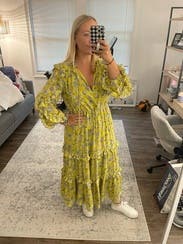 Sadly missed the memo on the sizing down part so this medium is huge but making it work! Size down and this is a dream dress, sneaks or sandals for spring!