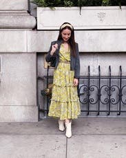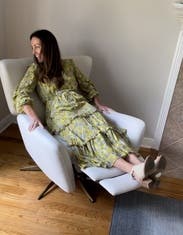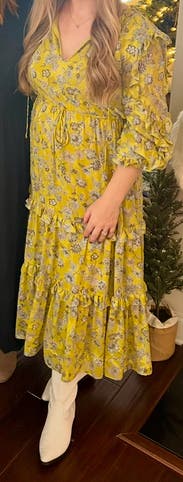 Wore this sunny yellow dress for dinner out the night before I gave birth (ie 39 weeks pregnant). Loved the joyful color and the waist tie cinched nicely above my bump.