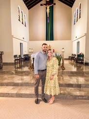 Wore for dinner and also to church at 29/30 weeks pregnant - super cute color, can tighten or loosen the waist! Got lots of complements! I did have to pin the chest because I didn't want my bra to show, but super easy fix!
