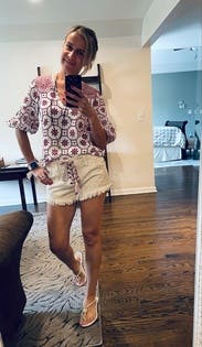 I wore this on several occasions when I wanted an elevated look. Wore it with denim shorts and sandals, jeans and wedges, a black skirt and pumps for the office. I loved the detailed embroidery and eyelets, and I found it went well with lots of basic staples from my wardrobe.