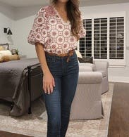 The eyelet detail along with the puffy sleeves made this top flirty and fun. It was a little short in me so I wore with high wasted pants and it wasn't an issue. I wore to several work events and casual events and received so many compliments each time. Will definitely rent again when warm weather returns!
