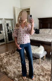 This top is versatile, easy to pair with pants. The sleeves have a bit of poof to them without looking too bulky.