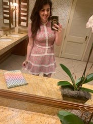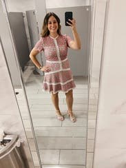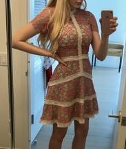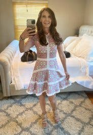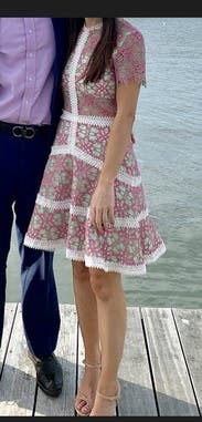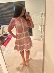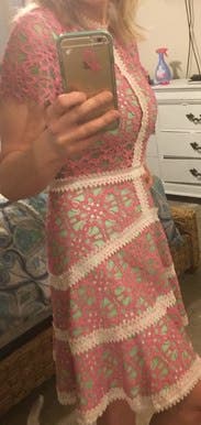 This dress was a hit at a baby shower for my good friend who is expecting a girl. The pink lace overly over the green pattern was just adorable. I liked this dress in person way more than I expected. I received so many compliments.