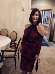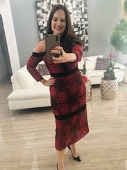 The detail on this dress is absolutely beautiful. The color is vibrant and it was perfect for a nice dinner. I usually rent size medium in dresses but for this one I ordered a large and it fit perfectly. The material is a tad heavy but also helps with tummy control. I had a few beautiful women stop by the table to compliment the dress!