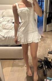 This dress said “peekaboo” the second I bent over. Tossed on some biker shorts and suddenly it went from risky business to chef’s kiss. Cute, no give or stretch so don’t wear if you plan on stuffing your face at a dinner… definitely a “handle with care” piece.
