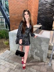 This sassy, sparkly dress is short and ready for a party! Perfect for NYE or birthdays. The long sleeves sort of off set the length of the dress. Amazing quality. Very firm fitting.