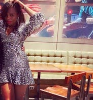 I felt like a disco ball in a good way in this dress. Super cute and fun. It's short but still feels classy with the long arms.