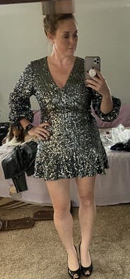 I wore this dress for NYE and I am obsessed. I received so many compliments that even my husband was surprised. It's super sparkly, stretchy, comfortable, and flattering. If you have a special occasion this is the dress!