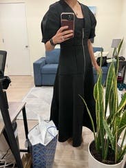 Wore to a panel event and orchestra concert with different jewelry each time. Very put together with an edge. On 5'4" it was mid shin which worked well for being on stage