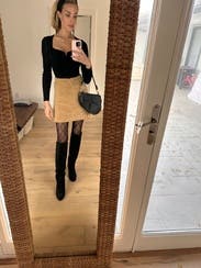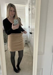 Loved this cozy, chic, and elegantly fitted Aliétte Sherpa skirt! So suited to glam up a windy, cold, and brisk day with some glam and ridiculously comfortable fabric and chicest fitting! I agree with other reviews that the waist is tight, but I found to be a perfect fit for petite and TTS otherwise, apart from being a tad bit short even for a petite short gal like myself! ❤️💕 Putting on my Wishlist to hopefully buy on sale-one of my all time FAVE items rented!