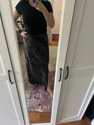 I could wear this anywhere and pair with anything! Doesn’t wrinkle, nice material, loose enough with the slit that you can walk around in it. Feels like a staple piece, I’m considering buying.