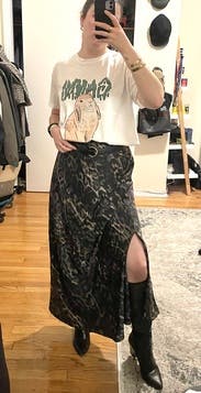 I have hips, so getting a slip skirt always stresses me out, but this has an elastic waist and a flattering cut. Waist puckered a bit and the animal print isn't my favorite otherwise I would've considered purchasing-got it NWT