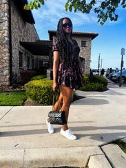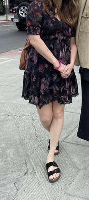 This dress was great for a warm spring day walking around Paris. It was lightweight, causal, and true to size. I paired it with sneakers to dress it down and was comfortable walking around all day.