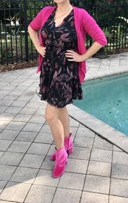 Loved the colors and fabric of this dress. I thought the silhouette was flattering for me. Easy and light to wear - wore with high boots for a cooler evening. Would work well for the spring too.