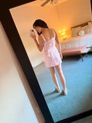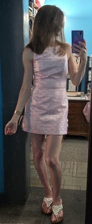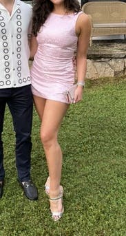 Perfect pale pink, satin flattering number! LOVED it and got so many compliments.