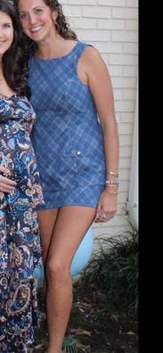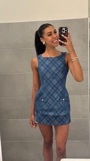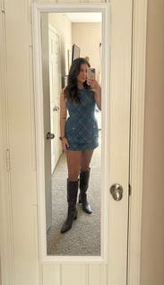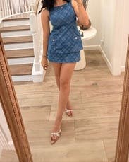 Wore this to a rehearsal dinner and it fit like a glove! So cute and flattering. It is layers of thick denim, so was warm. Otherwise the perfect little outfit for a lovely rehearsal dinner at a steakhouse!