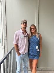 lol! So this was such a chic outfit, but it was hard to sit/move in. Also, you have to bring a buddy to the restroom or else you cannot get it off or back on! Lol! Maybe going up a size would’ve helped with the tightness. I am a 4-6 these days.