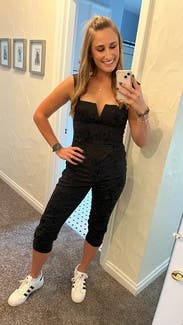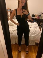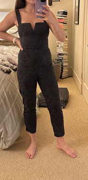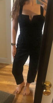 Such a flattering jumpsuit. Was a little big in the waist and the straps kept falling off but it was so cute!!!