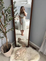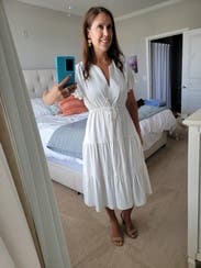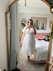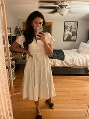 Such an easy and comfortable dress that still looks really cute! Probably runs a little generous. I'd size down if on the bubble.
