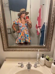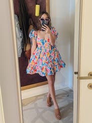 So cute and flowy, the perfect summer dress. I wore it in Texas with white cowboy boots and I got lots of compliments!! The top is a little lower than imagined, but I didn't mind it.