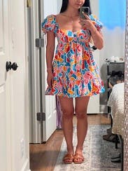 This dress is adorable!! It was so fun and festive! Fits great too. Perfect for my trip to Mexico!