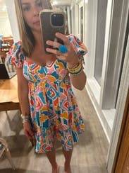 Such a fun dress to have in your closet! Super comfy and flattering. Fun colors!