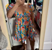 Love the bright pattern and how fun it was. I got a lot of compliments on this dress and outfit. Definitely would recommend renting it. It was forgiving since we were on vacation and we ate and had a lot of cocktails. RENT IT!