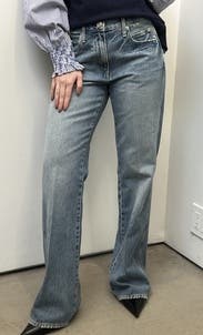 These AMO Marcenia Light Rise Flare Jeans channel a relaxed 90s-inspired fit with a low-slung, slouchy bootcut leg. Pair these designer jeans with a fitted, cropped cardigan and platform sandals for a nostalgic, effortless look.