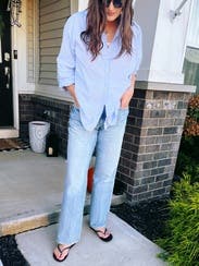 These jeans have a super trendy, "cool girl" fit. The low-to-mid rise, flared bottom, and Y2K-inspired wash are right on-trend. The long inseam makes them a great choice for taller individuals but I wore with a pump and they puddled nicely.