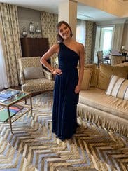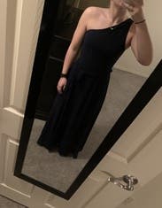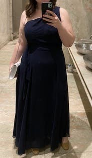 This was actually a backup dress, but worked out better than I could have expected. Runs a little small in the top, but overall very comfortable and a great length not requiring a unreasonable heel for me at 5'4". Would rent this one again!