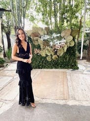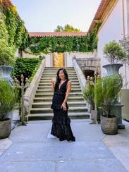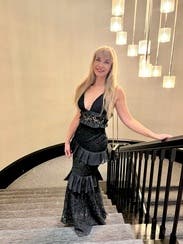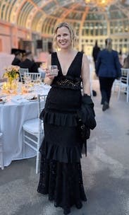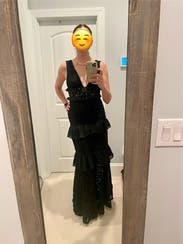 Wore this to a black tie wedding. I received compliments all night. I felt beautiful and confident in this dress. Loved the layers and the unique fabric!