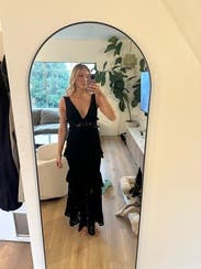 I absolutely loved this dress it was so perfect and elegant. I wore it to a gala at an art museum and it matched the vibe perfectly! I would say it runs ever so slightly big so you could size down if you need.