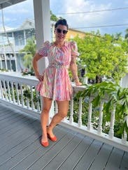 Love, love, love this dress! Feminine and colorful. Super fun for a nice dinner on vacation. Loved the flattering cut outs.