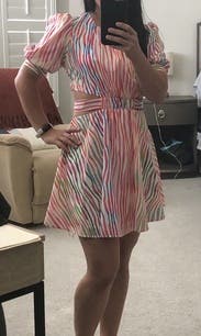 Dress was super fun to wear for a summer party. I ended up tying the bow in the front as opposed to around because I felt it made the cut out shape look strange, but the skirt was cute and flowy!