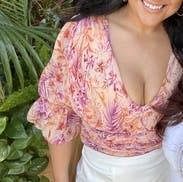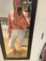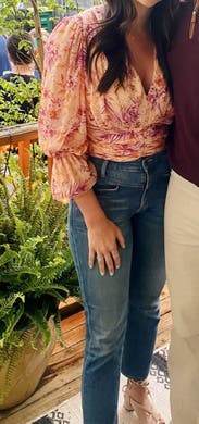 Loved this top! The print was really fun and so are the sleeves but it did seem like a lot going on with all the extra fabric. Very flattering fit but a bit of a deep v. Probably wouldn't rent again but it was perfect for vacation in Miami!