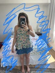 Love the pattern of this top and the top neck tie, but the back was very low and showed some side boob. The bottom was billowy and made me look wider. Didn't end up wearing