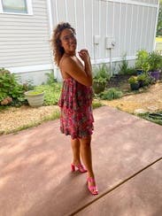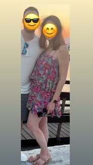 This dress was perfect for our Bahamian vacation! The colors were beautiful and the layers were very playful and fun! Would rent again! The lining layer is a little snug so if you’re hippy you might want to size up.