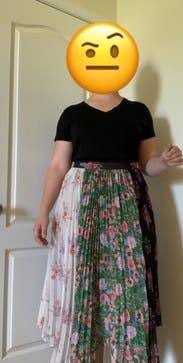 a very pretty skirt, but I am 5'3, and somewhat more bottom-heavy, so this skirt was too long and added too much volume that isnt flattering on me