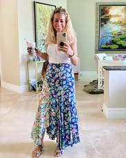 First of all, this is my second time renting this skirt as a member which I've never done before. There's just something about this skirt that is so summery and fun and begging for complements. I love it and definitely helps that I got engaged wearing it. Fit wise I normally am a 2 and the 4 was perfect fit