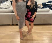 I wore this twice. Paired with a black merino wool turtleneck and felt festive instantly. Really comfortable, lots of give - could likely size down if they don’t have your size. I didn’t get a photo, but will certainly rent again. It was longer on me (to the knees) than the other photos (maybe due to flat rear). At my height, it could work for an office, didn’t look as going-dancing-short as the model photos.