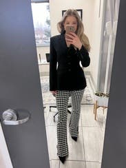 Great cut on these trousers. I love black and white dressing for work and the houndstooth is so fun. Fit was a bit tight in the hips so I wore a longer jacket, I will definitely be renting again in a size up!