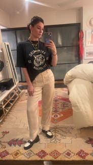 This tee is so comfortable!! I dressed it up, wore it super casually, and basically just found every excuse I could to wear it. The sleeves are on the longer side but it didn’t bother me, I rolled them up and honestly liked the way the longer sleeves paired with the looseness of the tee. Crazy to say this about a tee shirt but this was one of my favorite rentals :)