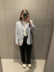 Fun blazer. Very oversized so more of a trendy work look vs classic
