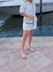 Super cute, a little thick for very hot weather. The gold zippers make it fun. I love trying white things on RTR because I don’t think they are practical to own! Size 38 was maybe a little large for my frame but it was comfy and I don’t think I’d size down.
