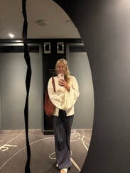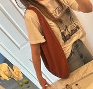 This purse slips off my shoulder no matter what I wear. Made from a single piece of hide, it does not have any pockets so it's best to organize my stuff in little bags otherwise I find it really difficult to fish out anything, like the phone! Otherwise, it smells wonderfully leather and looks so amazing with fall outfits and scenery.