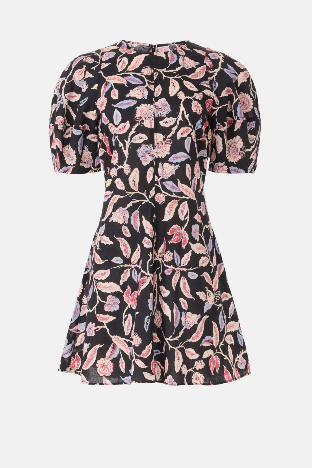 Black floral (100% Cotton). Casual dress. Crew neck. Short sleeve. Back zipper closure. Shoulder to hemline length: 34". Imported.