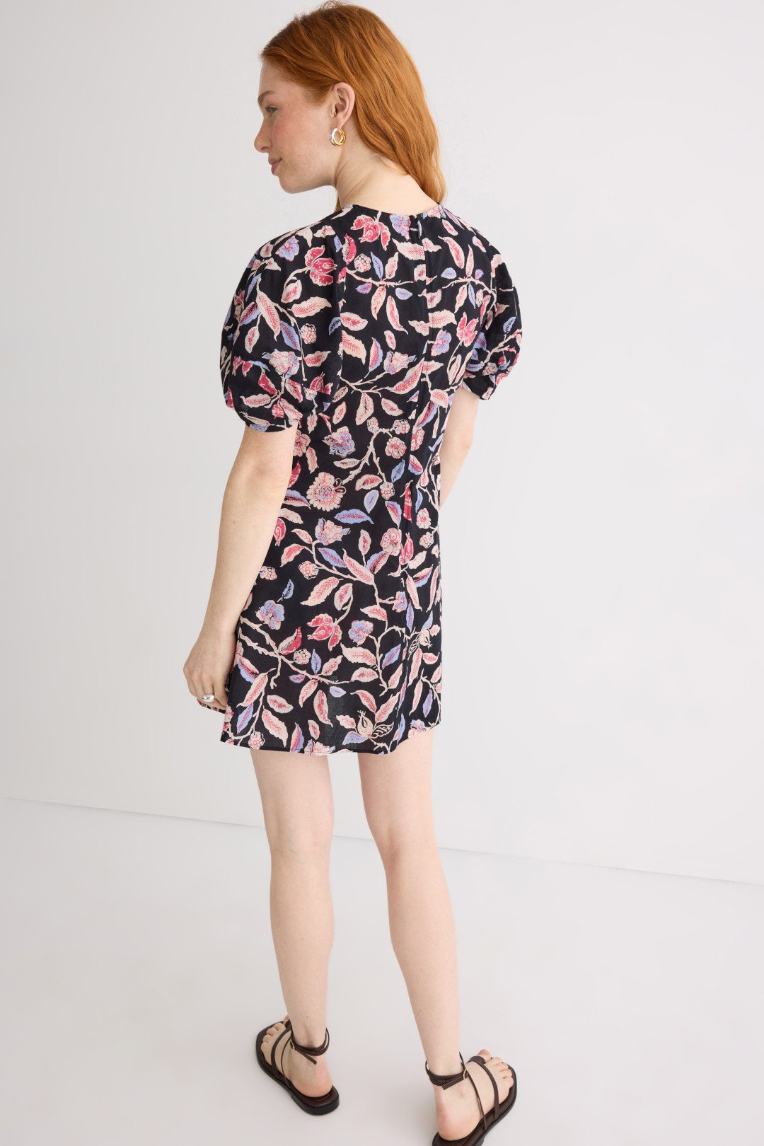 The Bettina Mini Dress by Apiece Apart offers a flattering A-line silhouette with lantern sleeves and an asymmetrical hem. Style it with ankle boots and a crossbody bag for a polished daytime look.