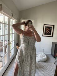 Probably not the most flattering on my bump but super comfortable and I appreciated the slit! Definitely runs large as I’m usually a 6 and took a 4.