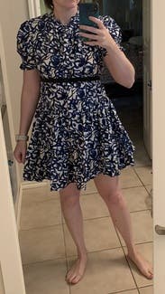 Such a cute dress. The fabric is a little stiff but it is super cute and not at all stiff. It is the perfect dress for an all day dress. I wore it a few times and had several compliments. I would have kept it longer but traveling this week to a colder climate and needed some other choices. Will definitely rent again!