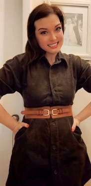 I like a more fitted look so I sized down can wear with belt or without looks adorable either way! Love this dress!